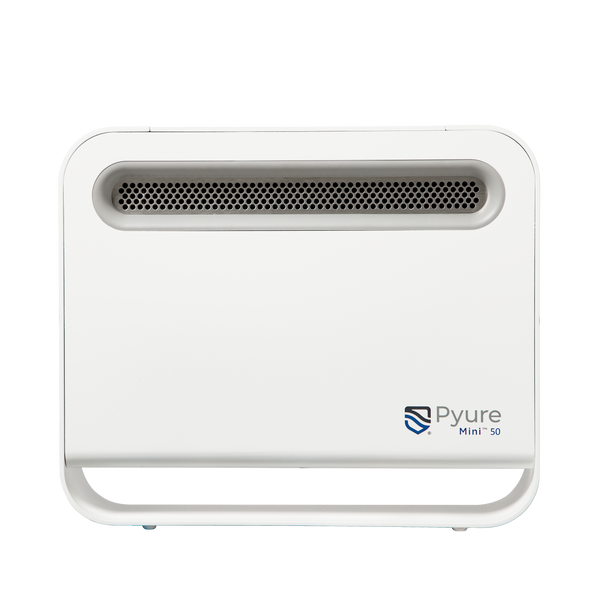 Cleanse the air in smaller spaces with the Pyure Mini 50 air purifier. Perfect for sanitizing and deodorizing indoor spaces, including homes, offices, conference rooms, classrooms, waiting rooms, senior living spaces, and more.